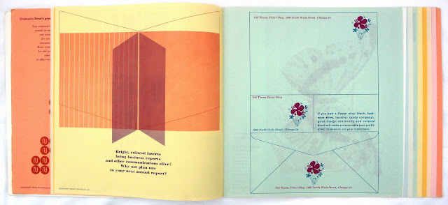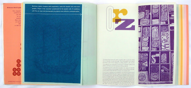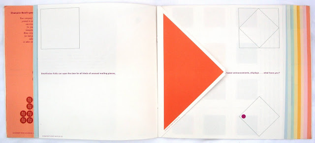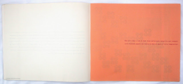 Paper companies had always supplied printers with sample books and they in turn showed them to clients to chose a suitable paper for a job. It was probably in the late fifties that paper companies started to promote their product directly to designers and small volume printers who sold themselves as more than just jobbing printers. They realized that this had to be more than just blank sheets of paper bound up as a sampler. Why not show how the paper could handle various printing techniques like litho, gravure, silkscreen, folding, cutting, embossing et cetera. These samplers for designers became ever more elaborate during the sixties and seventies.