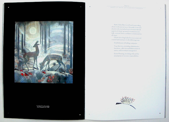Bank Julius Baer, a private Swiss bank founded in 1890 that provides a discrete financial service to a world-wide clientele, published this interesting brochure to attract ne customers. They chose to feature some magnificent Art Deco objects that get a brief mention on the first page and captions after that.