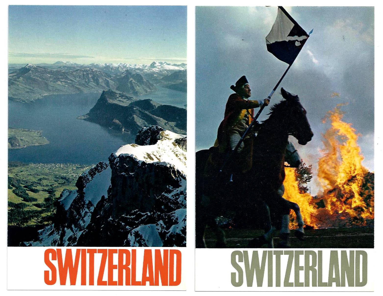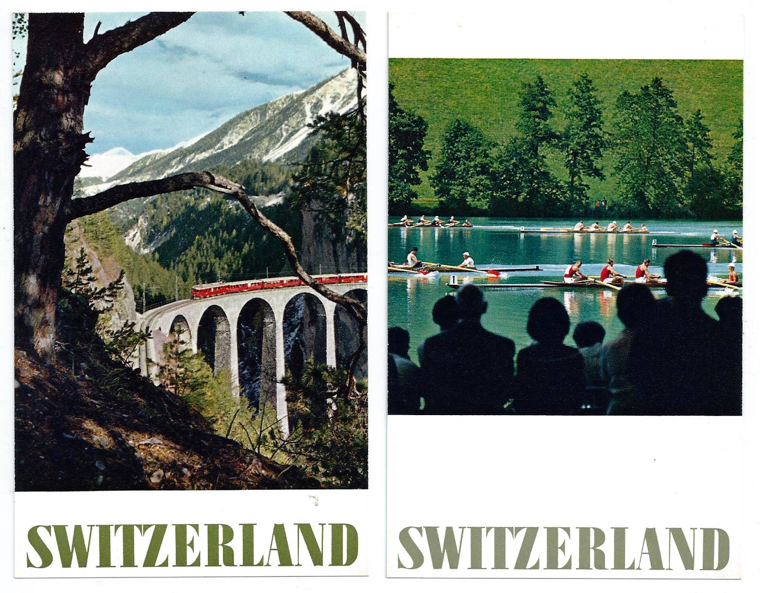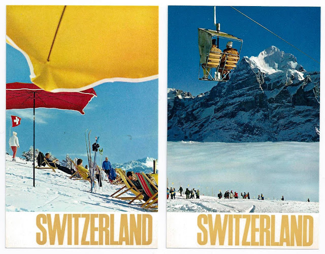 The Swiss Tourist Office gave away these attractive postcards in their offices around the world. The message side says they are postcard versions of posters. I've had them for some time so they might date back to the seventies or earlier. A very Swiss approach to promotion with their excellent photos and straighforward typography. Who would want to throw them away!