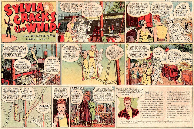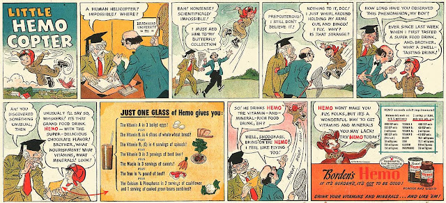 Earlier this year the always interesting Buttes-Chaumont blog featured some ads in a comic format. Madison Avenue, never slow to adapt to a medium other than magazine pages convinced national brands that comic ads in Sunday newspapers would really shift their products.