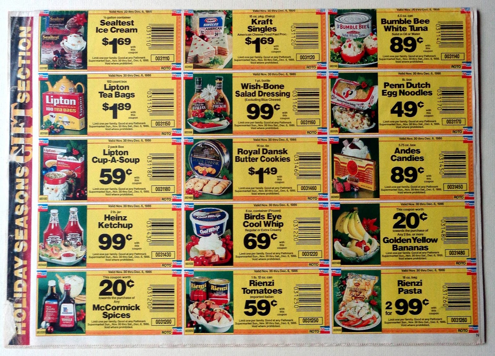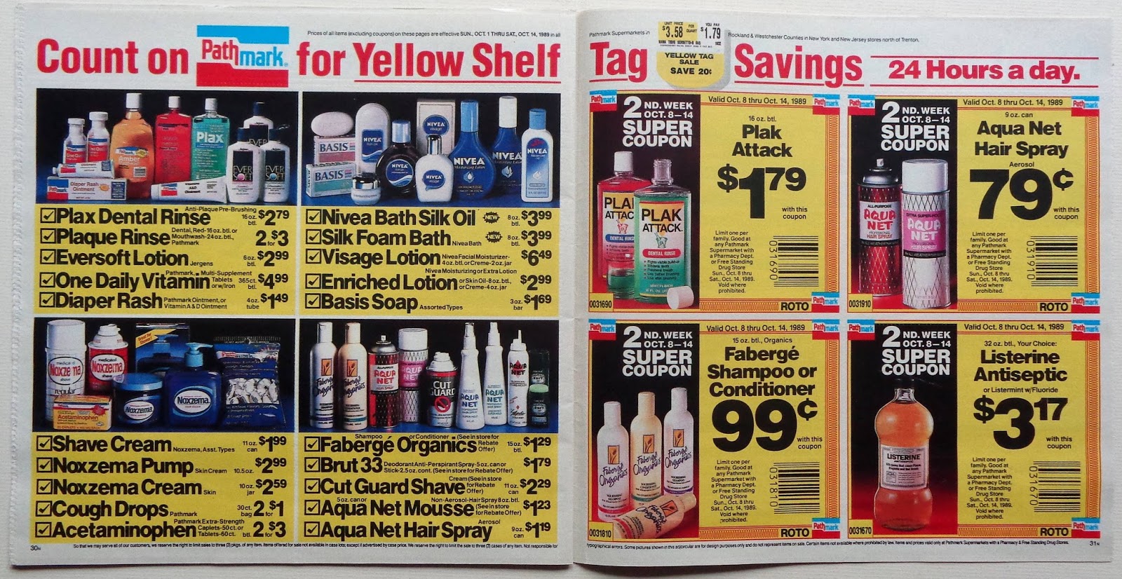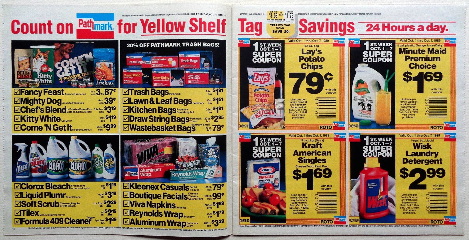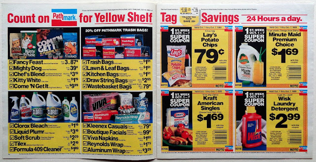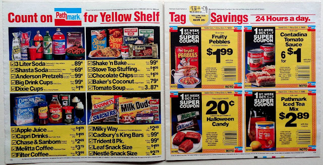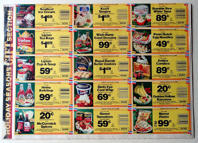 These pages have a ton of information and it's all packed in but they look very clean and controlled. It's almost a pleasure to clip the coupons. Incidentally, regular shoppers could well study the prices from back then.