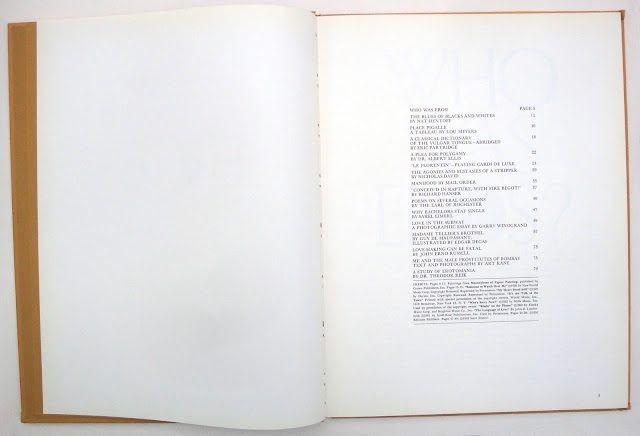Eros only ran for four issues and with Ginzburg facing criminal charges that was that. But what great issues they were thanks to Art Director Herb Lubalin. First off the size was impressive: thirteen inches deep by ten wide; stiff board covers (the first issue had a playing card stuck on the front) and several different papers inside; glossy for photos using 133, 150 and 175 screens for the letterpress and litho printing; text was on two kinds of matt art.