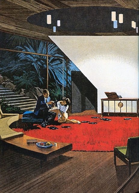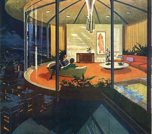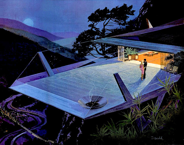 futuristic settings (possibly inspired by Charles Lautner) with huge amounts of
