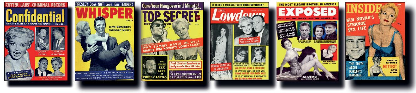 The magazines above eventually folded but the editorial concept of celebrity gossip, scandal and political intrigue lives on in supermarket tabloids and weekly glossies still selling today.